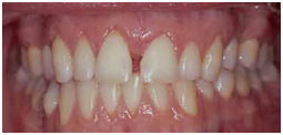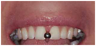 The patient provided the research team with photos that demonstrated she had no diastema, or space, prior to having her tongue pierced. For the purposes of treating this patient's space, it was assumed that positioning of the tongue stud between the maxillary central incisors or "playing" caused the midline space.