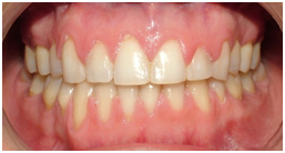 Her treatment involved a fixed braces appliance to push the front teeth back together.