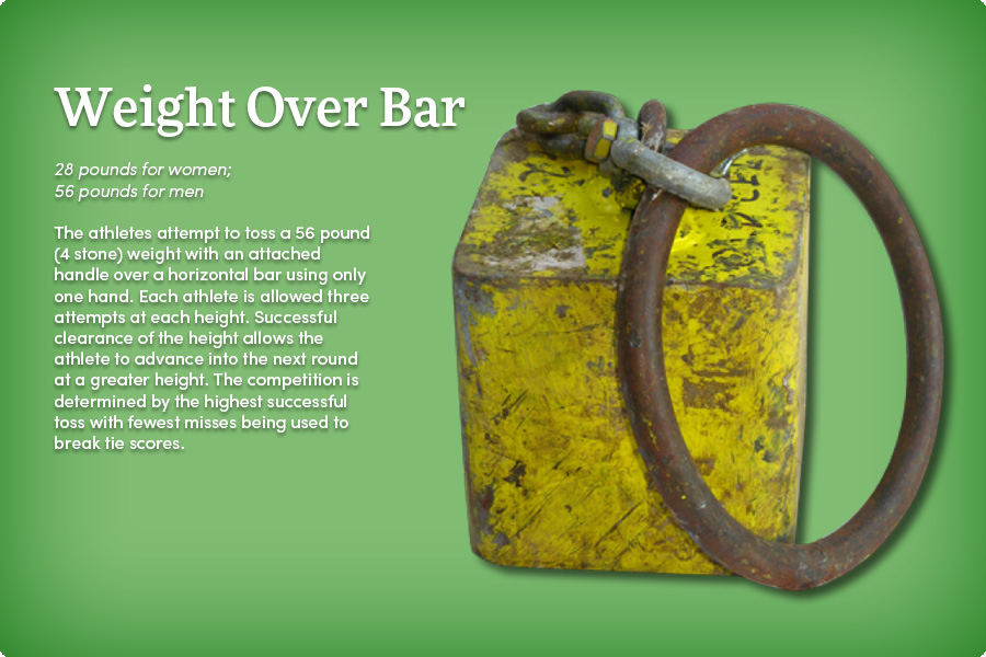 The weight of the item thrown in each event varies for men’s and women’s competitions. There are also Masters competitions for participants over 40.